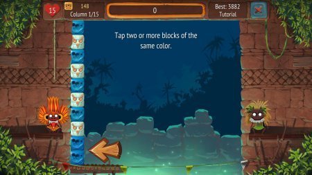 Tap the Blocks – игра выполнена в жанре аркады. Графика порадует игроков. Но некоторым может показаться, что игра обычная, наверно так оно и есть, три в ряд, нужно уничтожить все одинаковые блоки. Однако, не все так просто как кажется. Для того чтобы выиграть нужно больше, чем просто тыкать в одинаковые блоки. Ведь на месте убранных будут появляться совершенно новые, в непонятном порядке, при этом они будут мешать вам тем, что будут смещать всю вашу постройку в край экрана. Перед игроком стоит непростая задача – уничтожать кубики так, чтобы контролировать передвижение основной постройки, не дать им попасть в яму. Игра имеет интригованный геймплей, превосходную графику, определенный сюжет: старая магия, древние обряды, и звуковая озвучка. Русский язык: нет.