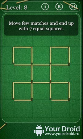 Однажды я отправился в дальнее путешествие на самолете и чтобы не скучать, поставил несколько классических головоломок на телефон. Я удивился тому, как обыкновенная спичечная головоломка заполнила мои шесть с половиной часов в полете, не заставив пожалеть. Проведя с головоломной игрой большую часть времени, сидя в кресле авиалайнера, я осознал, насколько хорошо простые и примитивные игры влияют на психику. Дабы не быть голословным и не вдаваться больше в детали, я просто порекомендую загрузку дистрибутива головоломки с последующим запуском на смартфоне.