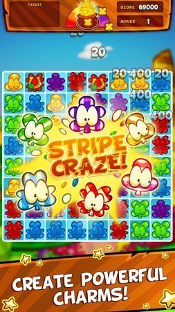 Clover Charms – проследуй в занятное передвижение по колдовской стране данной игрушки на системе андроид, там ты столкнешься с миленькими персонажами. В представленной игре перед тобой раскроется поле, на котором размещены масса цветных листиков клевера, твоя цель собрат из них цепочку и подорвать их. Перемещайся по колдовской стране и помоги эльфам, гномикам и еще единорогам убрать все листочки клевера. Собери самые длинные цепочки из листочков и получи в результате награду широкие бонусы, а еще усиления, которые будут помогать тебе скорее закончить все приготовленные уровни. Поставь личный рекорд в приготовленной игрушке и соперничай с самыми сильными пользователями.