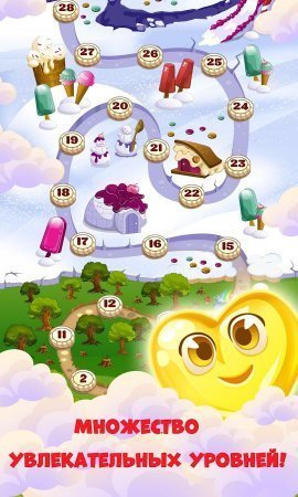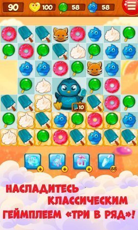 Игра Долина Сладостей - из разряда «три в одном», подойдёт даже для развлечения малышам и научит их развить логическое мышление. Игрокам нужно собирать в ряд разнообразные сладости, кристаллы, фрукты и многое другое. И набирать, таким образом, очки. О правилах игры расскажет добрая фея, нужно идти к знаменитым поварам за звёздными рецептами, но по пути к ним нужно решать различные головоломные задачи, собирая сладости. Можно следить за своими очками и количеством собранных конфет и прочих сладостей. Очень важно не пропустить сладости с плюсом, они принесут дополнительные очки. Очень красивая, яркая графика. Русский язык: да.