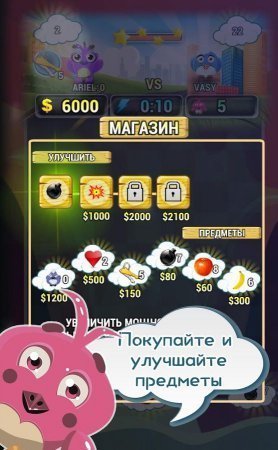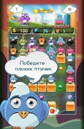 Birds Bomber Match3 Puzzle – игрушка из тематики три в рядок, в которой тебе нужно помогать небольшой птичке Ариэль. У данной птички приболел ее ребенок срочно необходим врач, Ариэль помчалась на помощь. Но ей мешают злобные птички, справится с ними, возможно только применив бомбы. Передвигайся по полю игры и размещай бомбы, в необходимых местах применяя для этого свое мышление и логику. Исполняй комбо удары и копи необходимые кристаллы и разнообразные предметы, которые будут помогать поднимать мастерство и непосредственно умения небольшой указанной героини. Игрушка русифицирована.