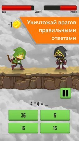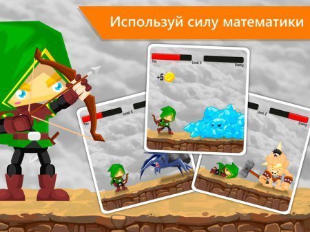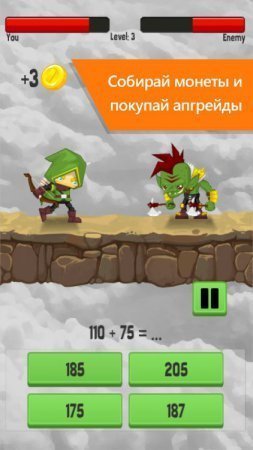 Math Heroes – персонажи математики это своего рода такая занимательная игрушка, в которой тебе нужно использовать собственные математические задания для того чтобы преодолеть страшных монстриков. Тебе нужно дать верные ответы на простые арифметические задания. Но легкими они понятное дело будут только в самом игровом начале, чем дальше ты пройдешь, тем соответственно сложнее будет дальше. А ближе к концу будет вообще очень и очень сложно. Тебе необходимо серьезно по тужится чтобы преодолеть все возможны уровни. Чем скорее ты ответишь, тем больше шансов на твою победу. За каждый верный ответ, предоставляют монетки, за которые возможно улучшить представленного игрового героя. Игрушка русифицирована.