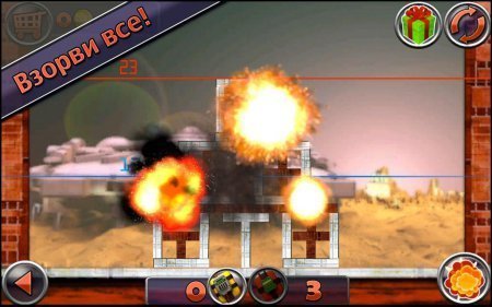 Demolition Master - игра для ОС Android, вся суть игры заключается в уничтожении объектов, по разным локациям. Ставим заряд с динамитом в подходящее место, для нанесения наибольшего урона. Игрока ожидает 9 самых разных локаций и 240 уровней. Хорошая механика и физика игры, имитирует очень реалистичные взрывы. Игроку даётся выбор разных уровней по всему миру. Присутствует возможность увеличивать отдельные детали игры, а также всё это сопровождается с великолепной музыкальной озвучкой. Русский язык: нет.