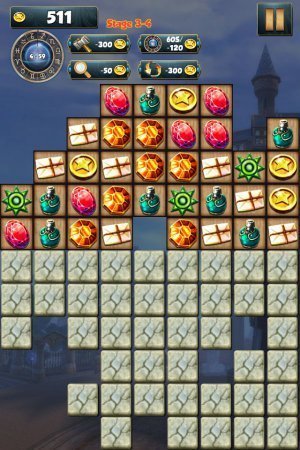 Quest – интересная андроидная головоломка из трехрядного жанра. Наблюдайте за исчезновением собранных столбиком или в строку – одинаковых предметов. Те, кто любит подобный жанр, будут просто без ума от представленной игрушки. Вашему вниманию – различные уровни, в количестве аж шестидесяти штук, проходя через которые – нужно зарабатывать монеты, искать совпадения и разные предметы. Русский язык: нет.