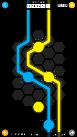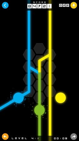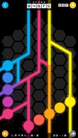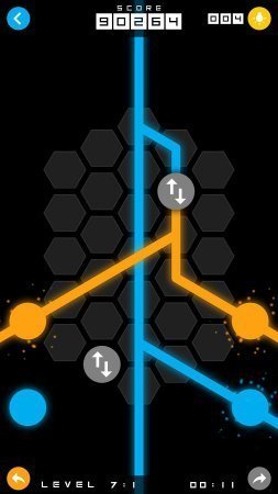 Mixit – потрясающая головоломка на андроид. Игроку нужно соединить точки разных цветов линиями. Перед игроком откроется поле, оно состоит из шестиугольных камер, из них выходят разноцветные точки. Задача проста: соединить все точки определенными линиями, но, чтобы совпадали по цветам. Решайте сложные задачи, ситуации и проводите линии так, чтобы получить новый цвет. Используйте свою мощную логику, сообразительность и наблюдательность, чтобы пройти уровень как можно быстрее и перейти на новый. Особенностью игры является то, что с каждым последующим уровнем сложность будет увеличиваться и необходимо больше думать, и напрягать свой мозг, также имеется 80 ярких уровней. Русский язык: нет.
