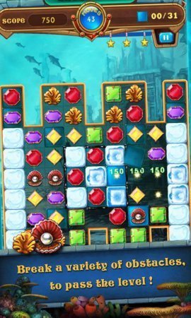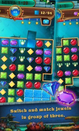 Atlantis Jewels Journey – изучи морские пространства и найди старинные сокровища которые потонули в Атлантиде. Опустись на самое дно моря и набери драгоценные камни в цепочку, по три и выше. Передвигайся по семи разнообразным дворцам и обследуй их на наличие драгоценных камней. Собери цепочку из трех и выше камушек и подорви их. Преодолевай занимательные уровни за само маленький перечень ходов и получи ценные бонусы и важные достижения, которые будут помогать тебе копить больше украшений. Подрывай драгоценности, копи баллы и окажись в самом верху лидерской табличке. Игрушка не русифицирована.