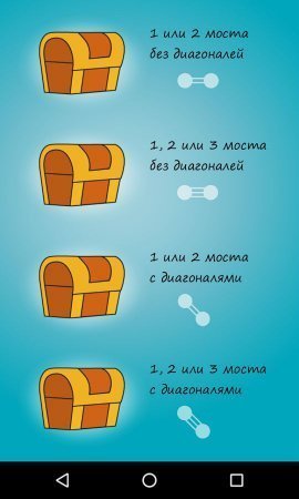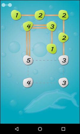 Hashi: Building Bridges – хорошенькая головоломка на базе андроид, разработанная по подобию известной игрушки Hashiwokakero. В данном проекте твоя основная цель будет соединять между собой острова расположены в океане мостами. На каждом островке указано количество мостов, которые можно выстроить. Выстраивай мости и смотри непосредственно за тем чтобы они не пересекались между друг другом и создавали непрерывную связь между самими островками. Проект порадует пользователей лёгким и ясным руководством, а еще способностью обучения в определенном режиме. Каждый уровень данного проекта имеет всего единственное решение, так что хорошенько подумай над каждым шагом и разреши сложную головоломку. В проекте есть парочка уровней сложности и моделей головоломки, а еще свыше двух тысяч задач. Игрушка русифицирована.