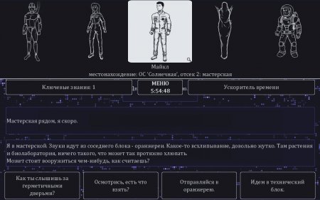 Lost Crew – текстовый научно-фантастический квест на Андроид. Научно-исследовательская станция с названием «Солнечная» затерялась в космосе, и вы – единственный, с кем получилось связаться. В начале игры вы получаете сообщение от робота, который находится на борту станции. Он передает, что через шесть часов станция сгорит в атмосфере загадочной планеты. В течение игры можно общаться со всеми членами экипажа, узнавать их характер и согласовывать их действия. Выбирая варианты ответов, вы определяете дальнейшую судьбу экипажа станции. Вы можете спасти их или убить своими командами. Смогут ли герои выжить, зависит только от вас. В игре есть 32 альтернативных финала, от хэппи-энда до трагичного конца. Русский язык: да.