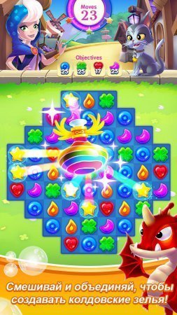 Magic MixUp – захватывающая игрушка в тематике 3 в рядок. Все условия вполне ясные и легкие. Вам необходимо построить фигурки необходимого цвета в единую цепочку. Но тут не все так легко. Задачи каждого из уровней будут отличаться друг от друга. Если вам необходимо устранить всего лишь зеленые, то с устранением жёлтых результата не будет. На каждую миссию даётся ограниченное количество ходов. Поэтому вам необходимо обдумывать все свои шаги на перед. В противном случае тебе попросту не хватит ходов чтобы довести дело до конца. В данной игрушке достойная и красивая графика в результате чего она становиться на достойную ступень в линейке подобных игрушек. игрушка русифицирована сеть интернета не требуется.