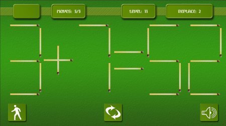 Matches – игрушка головоломка на базе андроид, которая непременно проверит твою реакцию и способности мыслить. Данная игрушка многим знакома еще со школьной скамьи, где важно было переложить спички и получить верное решение для самого примера. Тебе предоставляется конкретное количество спичек и еще время, складывай и передвигай их так, чтобы в результате получилось верное разрешение и пример получился правильный.