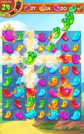 Pepper Panic Saga – помоги миленькому щенку, который любитель перцев, а не косточки перемещаясь по разносторонним мирам. Данный щенок не простой пес вместо того чтобы кусать кости он любит подбирать остренький перец чили. Передвигайся по разносторонним мирам и собирай по три и выше единых перца в цепочку. Как только твои перцы достигнут серьезных размеров они подорвутся и таким способом, ты создашь цепную реакцию и будешь смотреть за красочными эффектами. Преодолевай свыше сотни уровней, каждый из которых принесет эмоции тебе удивительными задачками и поручениями. Соперничай с собственными товарищами и карабкайся в самый верх лидерской таблице.