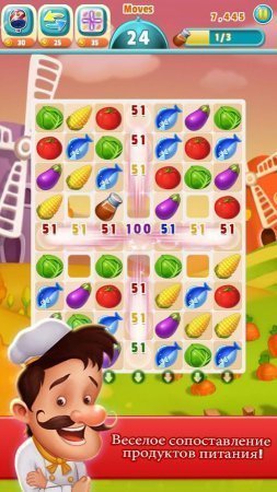 Yes Chef – игрушка из тематики три в рядок, где ты будешь помогать небольшому поваренку быть самым классным поваром и открыть двери собственного ресторана. Перемещайся по всему представленному миру и отыскивай новенькие для тебя рецепты, а еще доставай важные тебе составляющие для собственных творений кулинарии. Тебя ожидает свыше сотни разносторонних ступеней, где тебе необходимо будет собирать по тир и выше, овощей, десертов и морских продуктов, а еще запекать пироги, обслуживать возможных посетителей собственного ресторана и состязаться с товарищами. Преимущества – копите ингредиенты для собственных блюд, играй овощами, морскими продуктами и сладкими десертами. Играй на время. Поднимай уровень собственных умений в готовке. Играй с дорогими товарищами с Facebook.