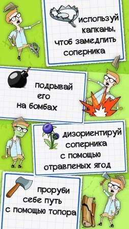 enigMap Online – занимательный проект головоломка на платформе андроид, в которой предстоит отыскивать ключ на спрятанной карте. Игрушка в самом начале может показаться тебе довольно простенькой, но это абсолютно не так, на различных картах создатели приложили руку и спрятали сюрпризы для тебя, к примеру, как – пират, крокодил, туннели, которые отправят тебя на иные карты, а еще есть пойти по неверному пути ты потонешь в страшном болоте либо е речке. Играй с собственными товарищами и стремись отыскать ключ непременно первым, чтобы убраться на лодке на новую ступень. Играя с противниками ты способен размещать ему разнотипные преграды и ловушки, но будь бдительны так, как и он все это может сделать, но уже для тебя.
