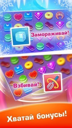 Крутые Кексы – занимательная сладкая головоломка, в которой нужно три и более сладости собрать в единую цепочку и тогда они пропадут. В проекте тебя ожидает сады пряничного формата, неимоверные вафельные леса, горы шоколадного типа и прочие сладенькие локации. Играй и преодолевай всех противников, лидерская табличка будет тебя шикарно мотивировать. Тебе нужно мыслить, применять логику и скорость и тогда все выйдет как нужно тебе.