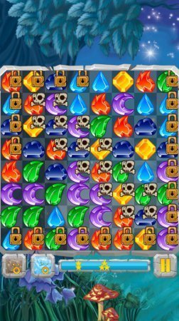 Лунные Камни / Moon Jewels – данная игрушка три в рядок, в которой масса разноплановых уровней от очень легко до очень-таки не простого. Выставляй камни три либо даже более в цепочку и столбики, раскрывая мороженные ячейки, разламывай ячейки с косточками и замками, устраните пауков. Собери все камни стихий и непосредственно приведи их в действие. Для того чтобы разработать стихийный камешек, выставь четыре либо более камней. Такие камни с костями возможно разломать только с применением магии, а камни с замочками только выставив по три в цепочку.