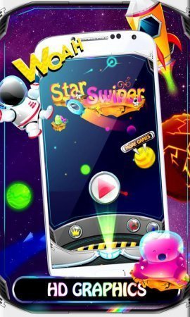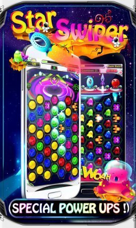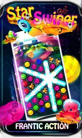 Star Swiper Deluxe -- новая головоломка на базе андроид по формату три в рядок. В данный раз все происходящее будет начинаться в космосе. Там ты будешь копить разнообразные материи разнообразных окрасов. Ты столкнешься с стильным инопланетным существом, которые будут помогать тебе в течении проекта. В проекте красивая графика с высоким разрешением, что предоставляет шанс пользователю насладиться красивыми окрасами и фантастическим геймплеем в проекте.