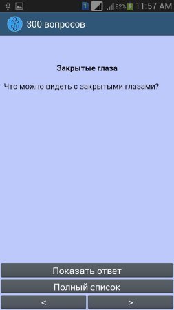 300 вопросов -- перечень интерактивных вопросов, которые ты постоянно способен порешать на дорогом устройстве системы андроид. Игрушка сохраняет в себе триста загадок и разных викторин. В проекте приготовлены народные загадки самых разносторонних стран, в этом же перечне и на логику, и на смекалку. Игрушка не сохраняет русификации.