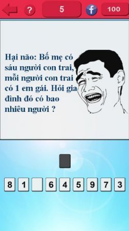 Do Vui Hai Nao, Do Vui Tri Tue -- серьёзная викторина на платформе андроид, где тебе важно раскрыть все слова. В данной головоломке тебе нужно раскрывать кроссворды по буковкам или раскрыть все слово полностью. В самом начале игры тебе буде предоставляться сотня баллов, которые ты способен потратить на раскрытие букв, по десять баллов за одну буковку. Отгадай слова и получи балы, собери достойный перечень очков и соперничай с товарищами за самые высокие результаты. Тренируй собственную память и мозг, раскрывая слова. С разумом трать собственное время, развивай деятельность мозга кроссвордами. С каждым последующим уровнем сложность игрушки будет становиться еще больше и тебе нужно будет сильно постараться, для того чтобы раскрыть весь представленный кроссворд.