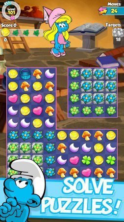 Smurfettes Magic Match -- проект о миленьких синих человечках, которые полюбились тебе давно. Тебе важно отыскать собственную деревушку, но для этой цели важно справиться с разносторонними головоломками и ступенями. Игрушка выступает жанром три в рядок, поклонники такого жанра сто процентов оценят проект достойно. Преодолей все семьдесят уровней, примени определенные смурфик-ускорители и отыщи собственное поселение целым и собранным. Разноплановые поощрения помогут тебе скорее отыскать собственное село.