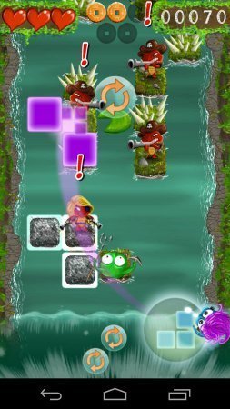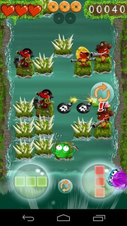 Тетрис -- один из многих известных и узнаваемых аркад и не обращая внимание на то что проект вышел уже более пары десятков лет тому назад он и по данное время имеет известность. За такой серьезный по меркам игровой жизни, период на основе тетриса было представлено широкий перечень аналогов, копий, переделок. А в последний отрезок времени в связи с движением моды на ретро проекты создатели начали выбирать еще больше времени стандартным аркадам и платформерам. Adventrix -- интересная аркадная головоломка на основе механике проекта тетриса. Твоя цель выкладывая сваливающиеся фигурки помочь жабе перейти с одного берега на иной, при этом местами бороться атакующими на нее пиратами. Преимущество проекта -- в том, что тебе самостоятельно дается шанс определять падающие фигурки, таким образом, чтобы так сказать продуктивней справляться с преградами.