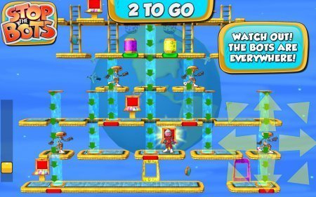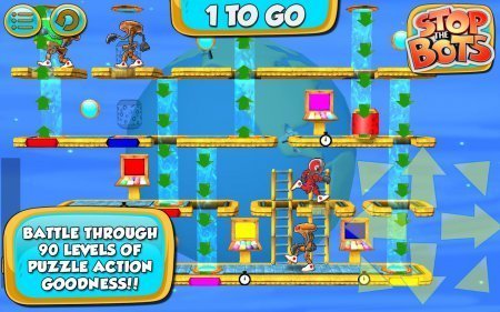 Stop the Bots -- проект головоломка, в котором тебе важно отключить судно инопланетного работа для того чтобы он не смог напасть на планету, на нашу планету. Броди по разносторонним ступеням и копите важные себе частички скорее, чем робот, который будет идти за тобой нага в ногу. Игрушка соединяет в себе головоломку с аркадным действием, где тебе на длительности девяноста ступеней нужно обойти преграды и уйти от встречи с роботом.