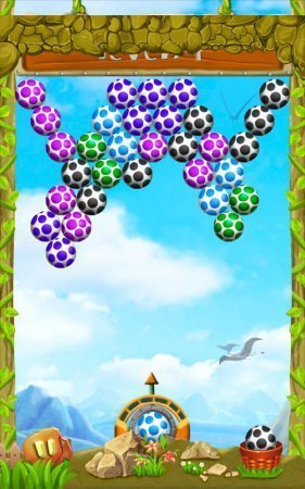 Shoot Dinosaur Eggs -- предлагаем твоему вниманию крутую игрушку, в которой тебе важно разбивать яйца дракона. Данный проект был очень известен в период рассвета современного компьютера. Цель проекта проста -- выстреливай из рогатки цветными яйцами, и копите цепочки их трех и более яиц единого окраса. При этом она будут исчезать с поля. Как только ты зачистишь весь представленный уровень, ты перейдешь к новому. В течении преодоления гамма шариков будет становиться все больше, таким образом играть будет сложнее. Так как чем больший перечень разного цвета яиц, тем белее сложнее набрать комбинацию. А еще помним про плюсовую угрозу -- поток самого уровня будет опускаться, до того момента пока не прищемит тебя яйцами. Как только такое случиться -- ты проиграешь.