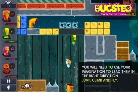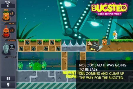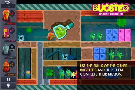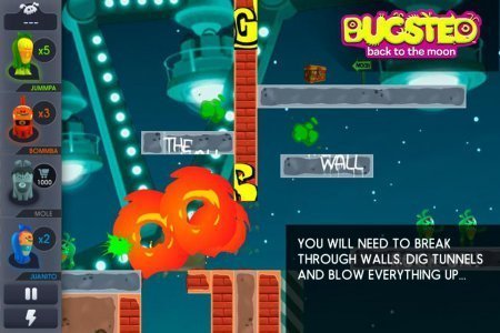 Bugsted - Back to the Moon -- проект на базе аndroid, в котором смешные инопланетные существа оказались на планете Земля и теперь стараются любым вариантом возвратиться домой. Помоги им в таком вопросе, для этой цели необходимо будет прорываться сквозь стены, копать тоннели и подрывать все на собственной дороге. Но не все может быть устранено, так что тебе нужно будет применять все собственное воображение, для того чтобы провести героев домой в верном поправлении сквозь сотни восхитительных ступней. Проект без русификации.
