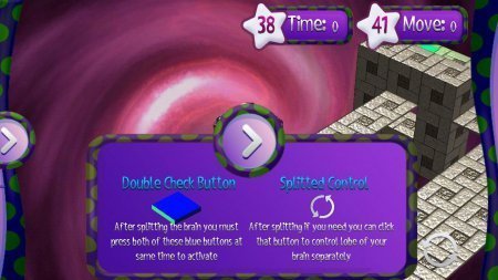 Split My Brain - проект на системе андроид, в которой непременно тебе предстоит руководить правой и левой половинки мозга для преодоления уровня. Пара кубов Split My Brain представляют твой мозг, для того чтобы попасть к финишу ты можешь руководить ими по одному либо собрать воедино и направлять их перемещение сообща. Преимущества -- сорок разноплановых ступеней в двух главах. Разно форматные решения для преодоления сохраненных ступеней. Клавиша переключатель, которая даст возможность руководить долями мозга раздельно. Удивительный игровой геймплей.