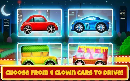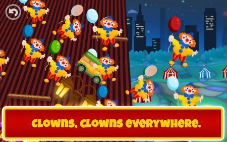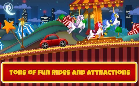 Magic Circus Festival – отменные гонки на базу андроид, по локациям большущего цирка и парка развлечений. В данной игрушке ты будешь контролировать небольшой автомобиль пройдешь с ней путь разнообразными локациями, уклоняясь по дороге от всех препятствий в облике трамвая, туннеля и еще веселые качели, и клоуна. Перемещайся на высокой скорости по холмистой территории и справляйся с не безопасными петлями дороги. Проносись мимо веселых аттракционов, быстрых каруселей, а также красивых качель, и совершай различные трюки, а еще замечательные перевороты. Собери необходимое количество очков и раскрой для себя новенькие красивые дороги и автомобили. Всего в игрушке сохранено четыре машины и двенадцать разнообразных дорог.
