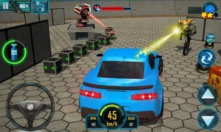 Car Vs Robots Demolition 2016 – бери в свое руководство спортивный автомобиль и проведи его по феноменальным аренам игры. Здесь ты попадешь на огромную арену, на ней расположились зеленые кристаллы, роботы боевики и турели. Твоя задача заключается в том, чтобы провести машину по данному маршруту и при этом собрать все возможные кристаллы и не допустить, что бы соперник тебя подорвал. Выполняй поставленные цели и собери все кристаллы, которые располагаются в разных уголках арены, и получай по 3 звезды за любой с успехом прошедший уровень. Роботы и турели захотят уничтожить тебя и твою машину, не позволяй им это сделать, прячься в различных укрытиях, расположенных на уровне.