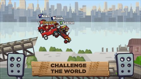 Hill Climb Racing 2 - Игра с обновлённой, более качественной яркой графикой, основанная на реальной физике. Это гонки. Игроку нужно преодолеть большое количество преград в ходе заезда. Самое главное это не попадать в аварии на трассе. И во время соревнования собирать деньги и канистры с бензином. Чем больше километров игрок проехал за один заезд, тем выше его рейтинг. На вырученные средства будет можно открыть новые автомобили или модернизировать тот, что есть у вас. Есть достаточно большой выбор опций. Доступно обновление подвески, двигателя, шин, замена цвета. Также гонщик может получить новую куртку и кепку. Играть можно как с ботами, так и с другими игроками. Пока не русифицирована.