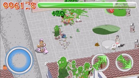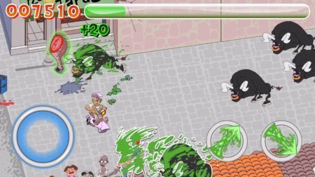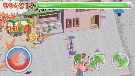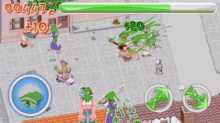 Super Moto Barf – игрушка которая по первым признакам особо не отделяется от простых представителей жанра, это такого рода изометрический раннер с частичками гонок. Но только ты сыграешь в данный игрушку как тут же все ясно что Super Moto Barf – это точно выпуск на любителя. Так вот тебе необходимо выступить в облике злобного, старичка ворчуна, который целый день перемещается на личном мопеде по городку. Необходимо сказать, что все происходящее развивается в испанском курортном городишке – Granada, улочки городка постоянно усеяны туристами, что очень не нравиться твоему дедушке. Да еще герой страдает страшным расстройство живота, так что при очередном недовольстве у него начинается рвота. Вот в облике такого не однозначного персонажа тебе и необходимо выступить, перемещаясь по улицам и рвать на всех, рвотными массами.