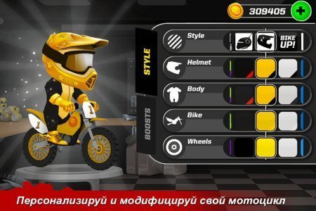 Bike Up – это интересная мототриальная игрушка, с неимоверными трассами, заполненная опасностям. Тебе необходимо хорошенечко освоить езду на замечательном мотоцикле, чтоб понимать саму смену обстановки нужно довольно быстро реагировать, так как ты будешь сталкиваться с негаданными преградами, стеклянный пол под которым масса большущих м остреньких шипов, сильнейшие штормовые ветра, которые притягивают с собой бомбы, могут непосредственно тебя подорвать. Все это тебе преодолеть необходимо на мотоцикле, в его настройку вошло масса опций. Присоединись к прочим пользователям, либо пригласи собственных товарищей, и сделай мото группу собственного виденья. Расслабление принесет разве что приготовленное фоновое оформление. Преимущества – сто один неимоверный уровень, широкий перечень настроек для байка, улучшения, красочные пейзажи в окружении, глобальная табличка по рейтингу, игра не русифицирована.
