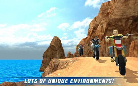 В игровом приложении под названием Off Road 4x4 Hill Moto Bike 3D вам необходимо управлять мощнейшим спортивным мотоциклом, путешествуя на нём по необъятным просторам игрового мира. Вы примите участия в мото-соревнованиях, преодолевая опаснейшие и коварные гоночные трассы, где соперничать с вами будут опытные водители. Примечательно то, что трассы располагаются в самых живописных и красочных местах. Также вы сможете попробовать собственные силы на бездорожье. Развивайте бешеную скорость, преодолевайте препятствия и обгоняйте других гонщиков, чтобы прибыть к финишу не только целым, но и первым. Необходимо показать лучшее время, чтобы попасть в список рекордсменов.