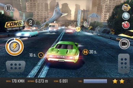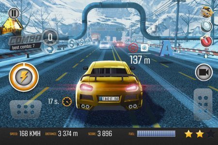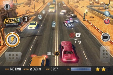 Road Racing: Traffic Driving – занимательные гонки по довольно подвижным дорогам городка. Данная игрушка вынудит тебя поднапрячься так как в подобного рода игра, в ней машин реально масса. Твоя цель собирать разнообразные бонусы, а еще топливо, чтобы добраться куда подальше. Но будь на чеку прочие машины могут перемещаться довольно хаотично, и когда ты не будешь того ждать, они тут же остановятся, либо примут решение поменять полосу передвижения. В игрушке даже имеется собственная сюжетная линия, с разнообразными диалогами, и даже интересными комиксами. Игрушка не русифицирована.