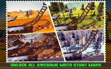 Stunt Bike Challenge 3D – возьми под личный контроль мотоцикл и руководи им на не простых трассах. В данной игрушке ты примешь личное участие в страшных гонках по не простым трассам. Ловко управляй своим мотоциклом по узеньким трассам и поднимай его на указанные трамплины, производя скачки и исполняя сальто. За каждый новый хорошо производный трюк ты будешь принимать хорошую награду, их ты можешь потратить потом на раскрытие новеньких трасс и покупку более сильного мотоцикла. По ходу передвижения не пропускай бонусы, благодаря ним ты можешь скорее окончить уровень. Игрушка принесет удовольствие от графики и простым руководством. Игра русифицирована.