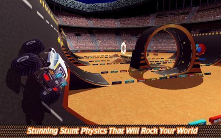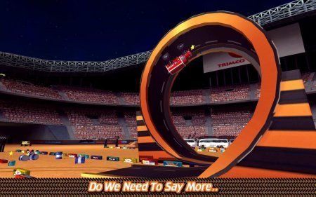 Football Stadium Truck Battle – игрушка с отменной физикой в которой ты будешь контролировать большущий грузовик. В данной игре ты будешь перемещаться по огромадному футбольному полю и справляться со всеми преградами, которые есть на дороге. Совершай восхитительные трюки пролетая сквозь автобусы школьного типа, которые стоят в рядок, применив для этой цели трамплин, а еще прокатись сквозь горящие колечки и петли. По дороге не пропускай ни одной звездочки и бонусы и поднимай уровень грузовика после каждого своего заезда. Стремись не разбить собственный грузовик, столкнувшись с преградами, а уж если так произошло, то покупай новенький на полученные денежки. Игрушка принесет радость простым руководством, свыше сорока уровнями и широким перечнем автомобилей. Игрушка не русифицирована.