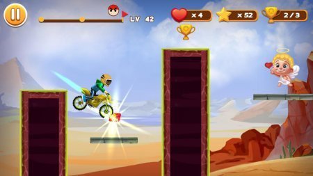 Stunt Moto Racing – шикарные гонки на мотоциклах по страшным трассам с красочной графикой. В данной игрушке ты окажешься за рулем горного мотоцикла и пройдешь с ним по разнообразным трассам представленной игрушки. Разгони собственный мотоцикл до самых высоких скоростей и на высокой скорости справляйся со всеми препятствиями, которые представлены в облике платформ, пролетающих ведьм, трамплинов и еще обрывов. Исполняй неимоверные трюки и получи достойное вознаграждение подлети в верх на трамплине и покружись в воздухе, исполняя различные сальто. Смотри не разнеси собственный мотоцикл по дороге и попади к финишу за самое короткое время. Копи по дороге золотые звезды и массу бонусов которые приготовлены проектом. Игрушка не русифицирована.