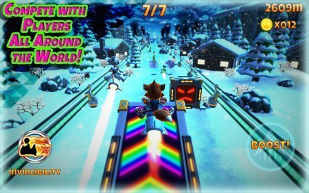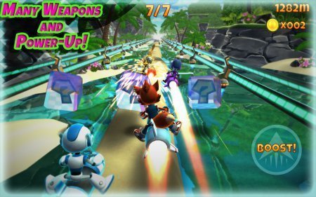 Rocket Racer – совершенно сумасшедшие ракеты, сумасшедшие скорости и эмоции на адреналине ожидают своего пользователя. Неимоверные красочные уровни, занимательные герои, сногсшибательные трасы с разносторонними преградами ожидают собственного пилота. Определи собственный типаж между Шина Рамоне и Fox Rock и проследуй к новеньким достижениям. Примени ускорители, разностороннее вооружение и конкретные предметы, для того чтобы добиться желаемого результата. Преимущества – разнообразные миры и широкий список дорог, примени разнообразные типы орудия для достижения победы, графика 3D формата на высоком уровне, копите монетки, чтобы приобрести парочку предметов и еще бонусов, проект способен поддержать как смартфон, так и планшет плюс поддержка геймпада. Игрушка увы не русифицирована.