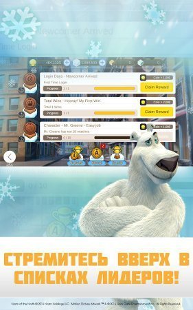 Норм и Несокрушимые – интересный мультипликационный фильм, который поведает о том, как миленький белый мишка и лемминги кидают вызов крупнейшей корпорации, которая желает между бескрайних льдин Арктики выстроить городок для богатых людей. Данный персонажи проследуют в каменные не простые джунгли шикарного мегаполиса, чтобы произвести бой. А далее данных пушистеньких бойцов ожидает уйма интересных приключений. Arctic Dash: Norm of the North – многопользовательский онлайн раннер, с интересной горизонтальной прокруткой, по ноткам интересного одноименного фильма, в котором тебе нужно играть за одного из героев и стремиться прийти к указанному финишу само собой первым. Но необходимо понять, что всем так сказать участникам данного забега разрешено не просто бежать, но и применить разносторонние хитрости, бросать сосульки, бутылки и прочие частички, на данной дистанции совершенно нет места для благородства спортивного характера, доступно всего-то желание победы. Любым путем. Игрушка не русифицирована.