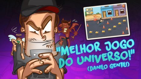 Центральным персонажем новенького горизонтального ранера который назвали Corre, Danilo, Corre, выступил такой себе малый которого звали Danilo Gentili. Как мы все это знаем шуточки бывают смешные и не очень, глупенькие либо остроумные, а иногда даже и вовсе жестокие. Так вот данный персонаж абсолютно не способен себя контролировать и бросает шутки на все боки, причем в большей мере крайне неприятные. И вот как-то терпение горошин лопнуло, и они приняли решение наказать данного шутника, серьезно так поддав ему. Герой, как и большая часть такого рода склада людей не выделялся особенной смекалкой, поэтому просто принял решение удрать. Необходимо отметить что и бегуном он был таким себе. Но мощность страха дала ему толчок скорости. Но что не совершишь из-за злобной группки. Так вот перед тобой забавный раннер, с лёгким, но занимательной линией сюжета, стандартным геймплеем и героем которому по любому необходима твоя опора.