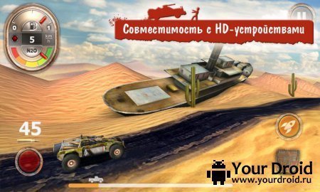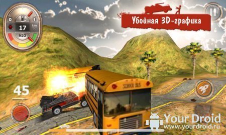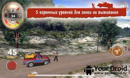 Поставив игру, вы купите автомобиль и начнете вести борьбу с устрашающими зелеными тварями, вооруженными дробовиками и автоматами. Если вам удалось миновать первую трассу в имитаторе Zombie Derby скачать в планшет, вложите средства в развитие: расширьте объем бака с бензином, прикупите оружия, двигательный агрегат и обязательно ускоритель азота.