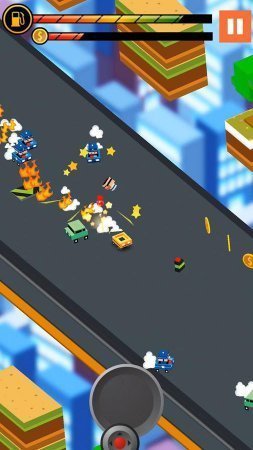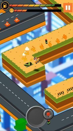Escape Fast – шикарные аркадные гонки детективный сюжет непосредственно которых заворачивается вокруг парочки товарищей, воришек банков. И вот после провернутого дела твой партнер внезапно принял решение забрать все украденные денежки себе и в этом же перечне и твою половинку. Ты ведь ясное дело не можешь так все оставить, твоему же уже бывшему товарищу так все простить. Но единственный хороший транспорт — это оставленные автомобили в облике такси, ну что лучше, чем совсем ничего. Укради один из автомобилей и проследуй в погоню. Сам игровой геймплей Escape Fast для платформы Андроид это совершенно стандартные аркадные гонки, вся игрушка поделена на этапы, которые тебе и необходимо преодолевать, руководя машиной. Каждая дорого просто напичкана различного рода преград и ловушек уклоняясь от них твоя цель пройти дорогу за малый отрезок времени, собрав по пути как можно больше возможных бонусов и усовершенствований. Визуально игрушка исполнена в достойном кубическом облике, который дополняет всю так сказать общую картинку.