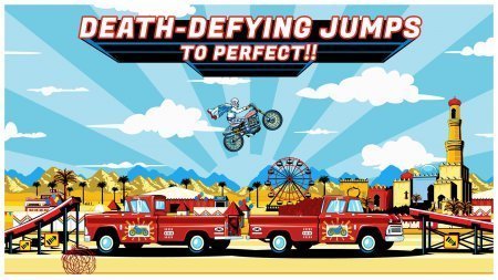 Evel Knievel – интересный мототрек на системе андроид, где тебе нужно руководить бесстрашным каскадером Ивелом Нивелом. В данном проекте тебя ждут неимоверные фишки с скачками сквозь трамплин и не один, автобусы и даже обручи. Усаживайся за руль любимого мотоцикла и пройди с ним по непростым дорогам, которые размещены в различных уголках данной планеты. Окажись в Чикаго, Онтарио, Лас-Вегасе, Лондоне и в прочих известных городках, которые предложат тебе удивительные преграды. Закончи указанные задания и раскрой неограниченный доступ к разноплановым мотоциклам, костюмчикам и шлемам. Сделай собственного героя удивительным и прими все достижения и поощрения.