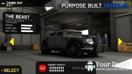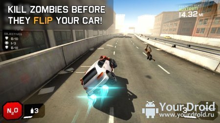 Ехать на раздолбанной тачке с выбитым фронтальным стеклом, когда на тебя прыгают мертвецы, довольно не просто, тем более сложно остаться в живых. Кто хочет прийти к финишу невредимым водителем, пусть избегает встреч с живыми трупами на дороге, покупает и улучшает спортивный автомобиль.