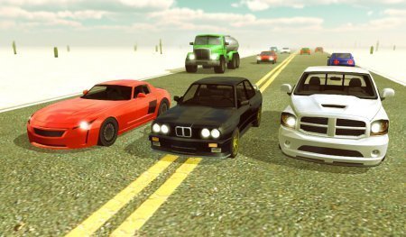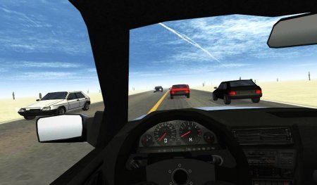 Desert Traffic Racer длительная дорога по безграничной пустыне. Асфальт, солнышко, песок и твоя машина, которая несется на встречу приключениям. Несись на бешенной скорости по дороге, оставляя поток машин позади, но смотри не нарушай правила чтоб не было аварии. В проекте приготовлено три типа машин – седин, серьезный внедорожник, суперкар. В проекте приготовлена смена времени суток. Преимущества – три типа машин, длительная трасса с автомобильным трафиком, физика машин на реалистичном уровне. Изменение времени суток. Из салона машины виден красивый вид.