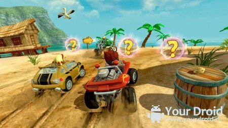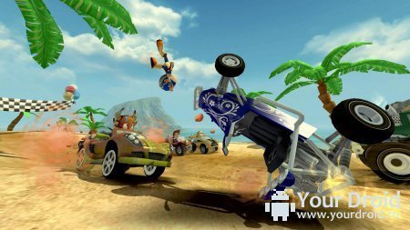 Взяв за основу опыт детства в таймерных играх, я предлагаю вам скачать на андроид и окунуться в мир, согретый лучами летнего зноя, сев за руль спортивного автомобиля в пляжном гоночном симуляторе. Сразитесь с автогонщиками в режиме мульти плеера, добейтесь успеха, станьте чемпионом в имитаторе Beach Buggy Racing с призами и бонусами.