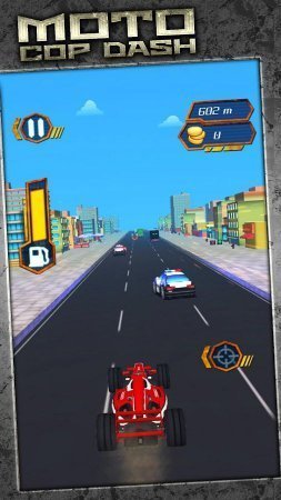 Moto Cop Dash -- аркадные гонки на платформе андроид, где тебе необходимо отважно руководить гоночной тачкой. Перемещаясь на большущей скорости по подвижным дорогам и преодолевай все машины, уходя от встреч с ними. Из-за сложных гонок по улочкам города и трассам, тебе ну уйти от полиции. Так что будь готов к сумасшедшим скоростям и нарушению всех правил движения на дороге. Жми на гашетку и мчи по дороге, перемещаясь в бесконечном движении автомобилей стараясь уйти от преследования. А еще настойчивые полицейские способны перекрыть тебе трассу, если такое произойдет, то тогда подрывай автомобили полиции благодаря собственному орудию.