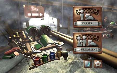 Slingshot Racing -- предлагаются гонки с четырьмя форматами на любое усмотрение. Тут есть режим карьера -- восемьдесят заездов, игра на выбывание -- нужно быть в строю. А еще на время -- подними рекорд и собственный результат сбор всех поощрений. Помимо этого, формат мультиплеера предлагает игру с товарищами до четырёх пользователей. Что касается руководства -- предложен сенсор и вид сверху. Все легко и доступно. От тебя нужно внимание, собранность и шустрость реакции. Чем дальше ты проберешься, тем больше раскрывается ступеней и делаются сложнее дороги. Игрушка не получила русификацию.