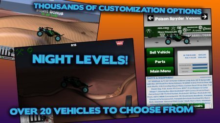 Offroad Nation Pro - это эмоциональные гонки на внедорожниках по пустыне днем и в ночное время суток. Реальные не простые дороги для реальных гонщиков -- любителям тут увы нет места, так как соединении графики и физики в проекте просто феноменальное. Сложные параметры ожидают тебя каждую минуту дороги -- нет асфальта только песок, куча эмоций и противников, тридцать есть ступеней сумасшедшего труда за желание победить. Победи и сделай собственный транспорт таким себе вездеходом, которому все не почём.
